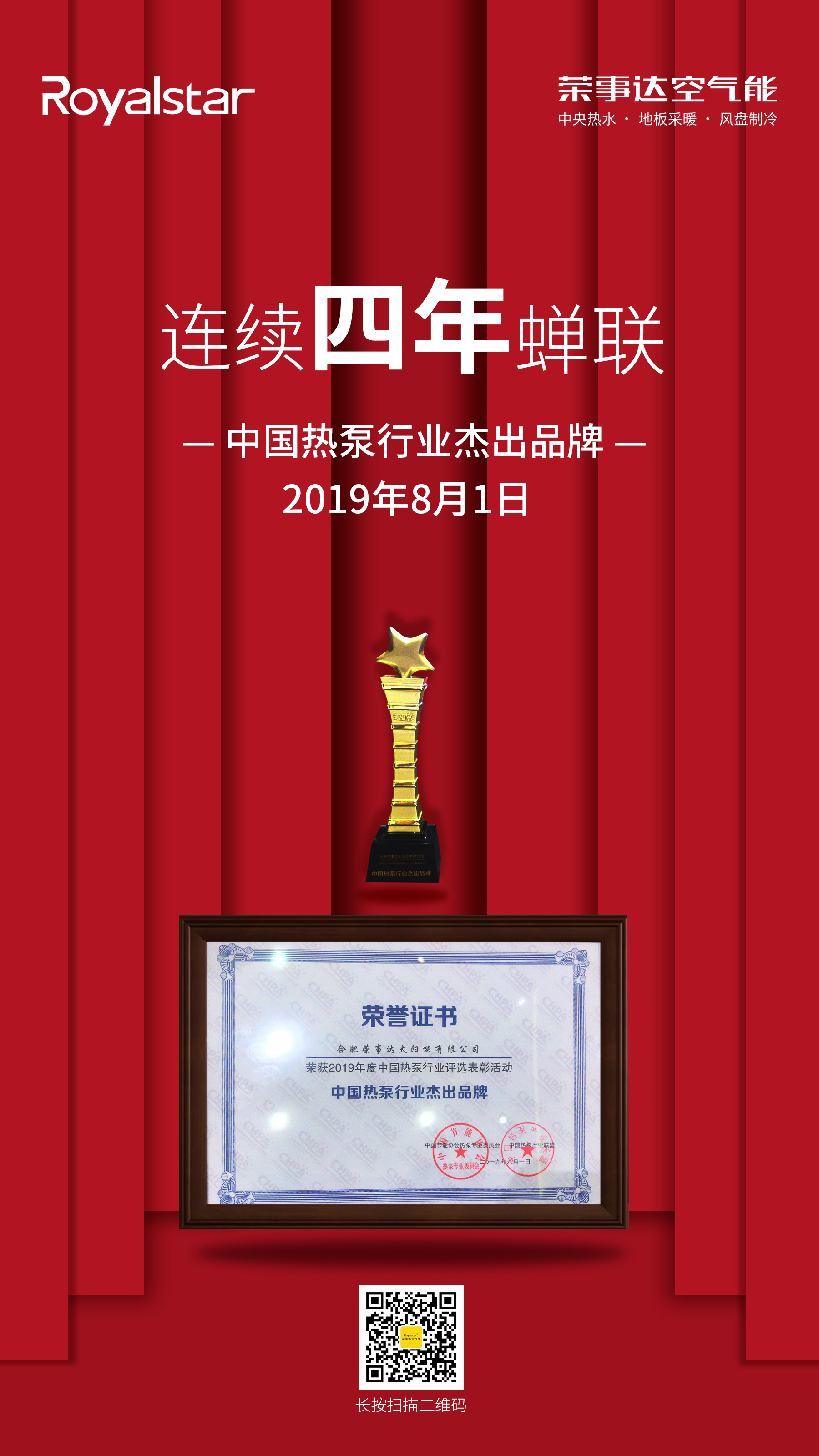 8月1日-2日,2019年中國(guó)熱泵行業(yè)年會(huì)暨聯(lián)盟成立十周年紀(jì)念會(huì)在上海舉行。此次會(huì)議是亞洲熱泵產(chǎn)業(yè)界最具規(guī)模的行業(yè)盛會(huì),匯聚國(guó)內(nèi)外熱泵行業(yè)最具影響力的品牌。榮事達(dá)空氣能受邀出席,以實(shí)力蟬聯(lián)“2019年度中國(guó)熱泵行業(yè)杰出品牌”殊榮,這已是榮事達(dá)空氣能連續(xù)四年蟬聯(lián)此項(xiàng)榮譽(yù)。